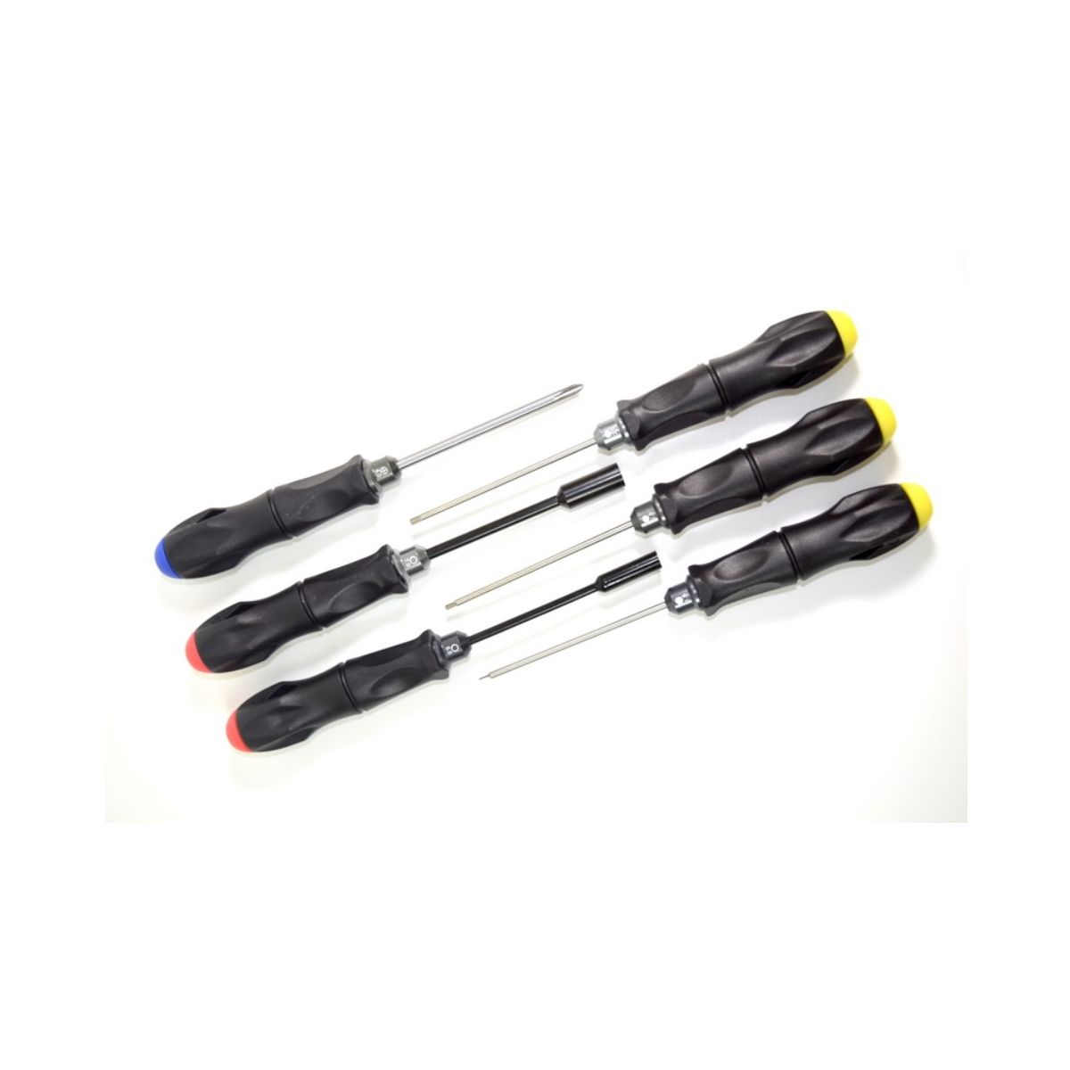 Minden, amit az alapvető RC szerszámkészletnek tartalmaznia kell, kitűnő anyagminőség, mely nem hagy kívánnivalót maga után. Forgatható markolatsapkák, amelyek fáradtságmentes csavarozást tesznek lehetővé. A műanyag markolat nagyon ergonomikusan fekszik a kézben is. Minden hegy minőségi szerszámacélból készült.