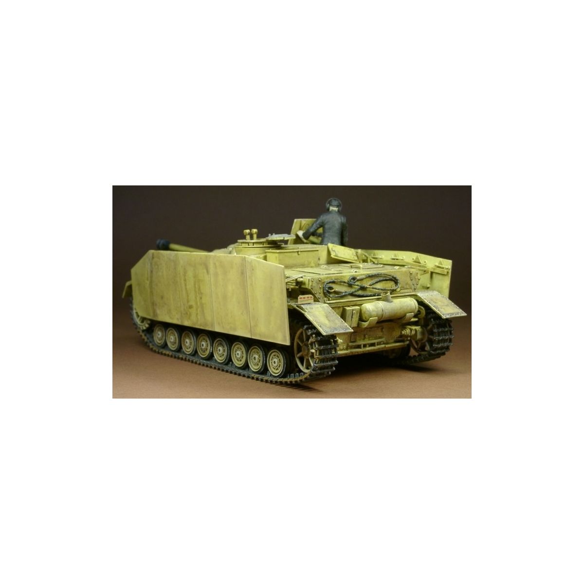 Az alváz és a futómű jól illeszkedik a felépítménnyel. A köténylemezek szépek, a torony nyilások nyithatóak, a gumi lánctalp szépen kidolgozott.