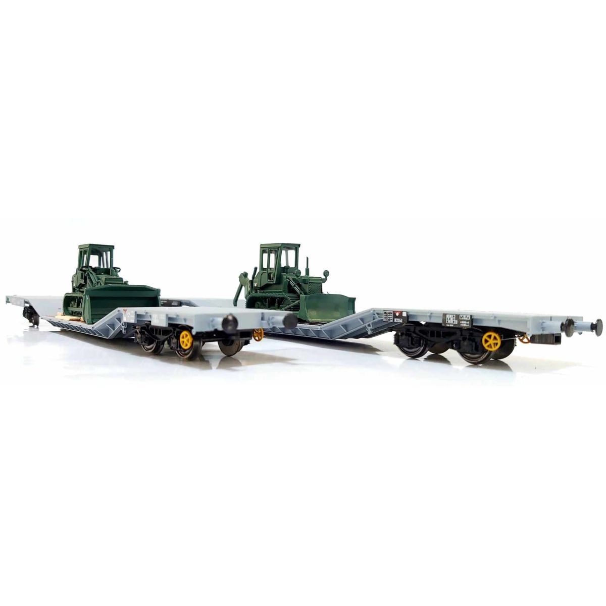 Süllyesztett rakterű vagon készlet, Uai, katona bulldózer rakománnyal, FS V-VI