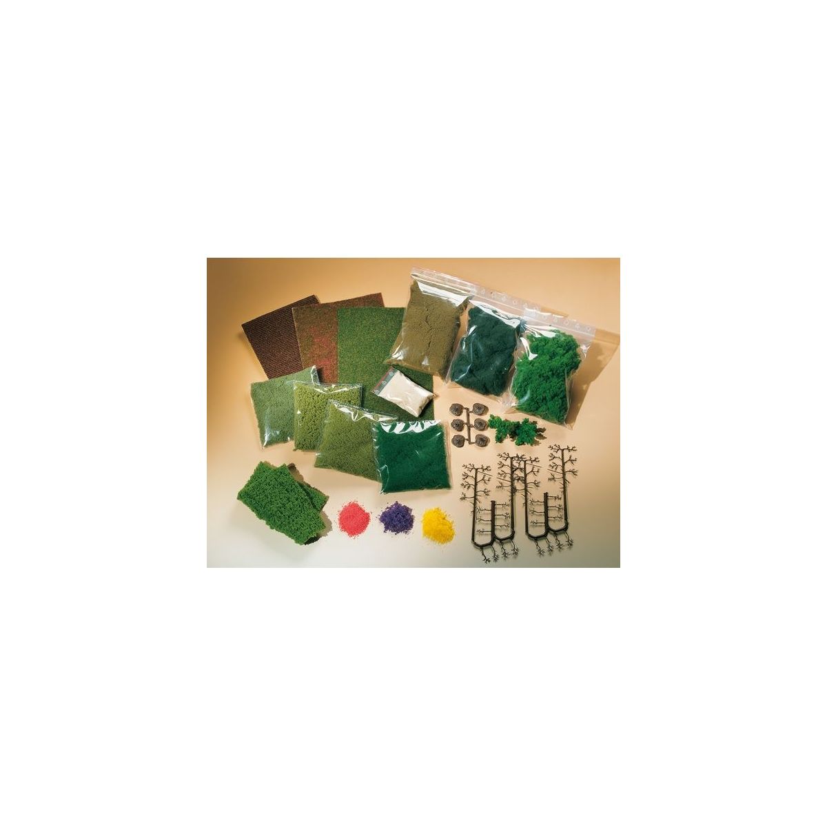 Auhagen 76990 Terepépítő készlet, fák és szórónyag