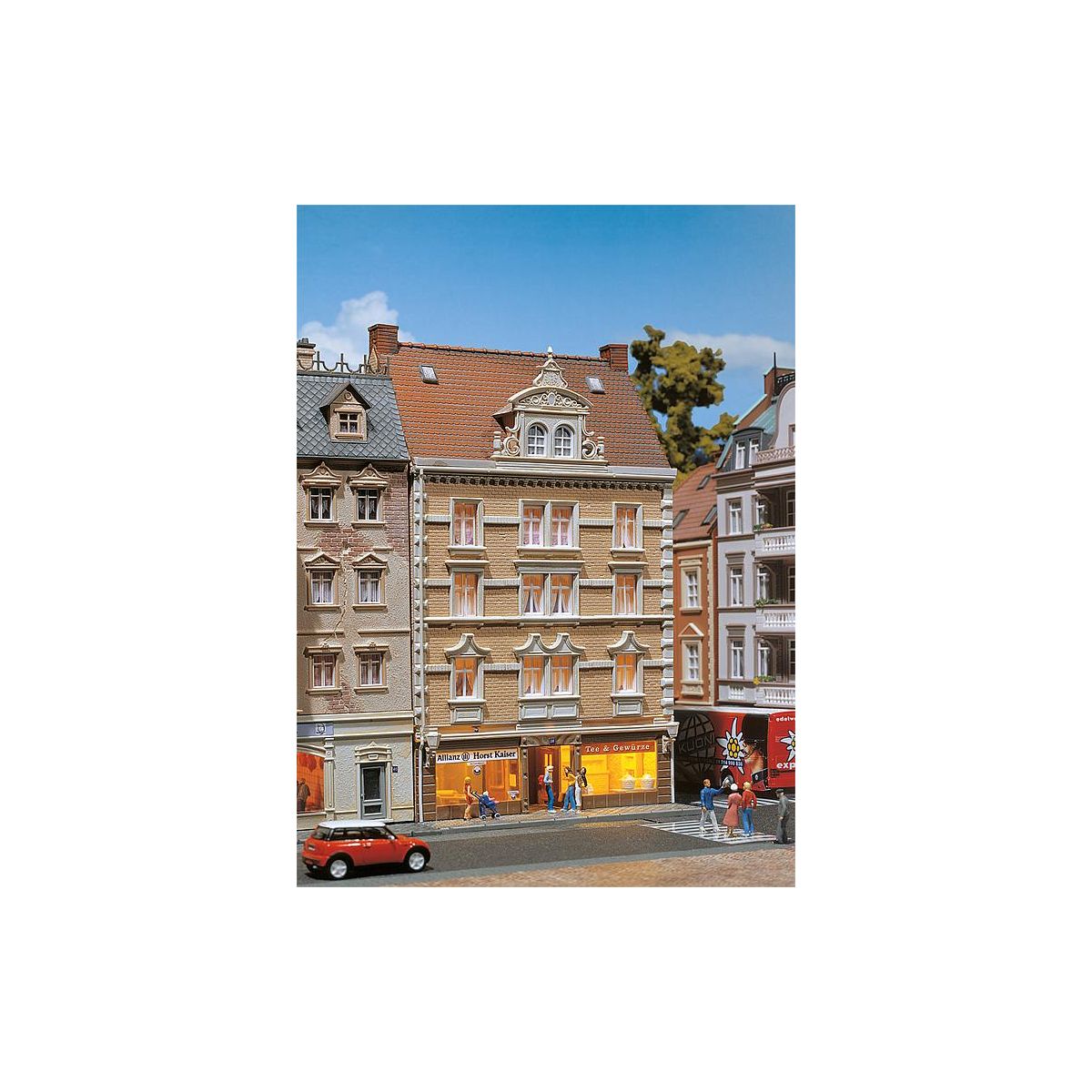 Faller 130448 Emeletes városi ház Allianz biztosítóval és fűszeressel