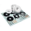 Fehér színű, matricákkal együtt