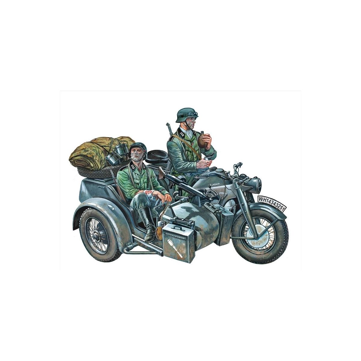 Német II. világháborús Zündapp motorkerékpár 3 festetlen figurával .