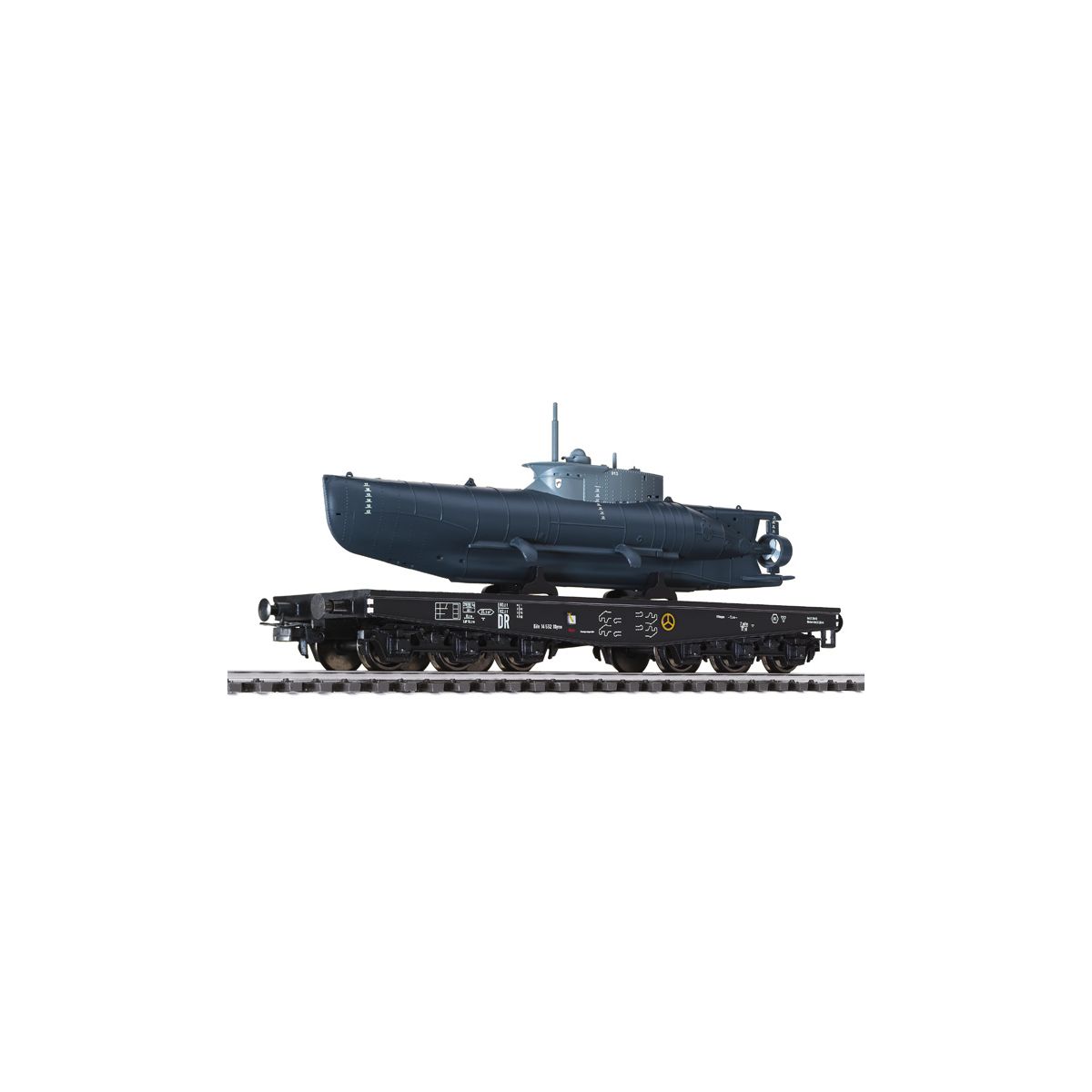 Liliput 235730 Nehézteher-szállító kocsi SSyms Köln 14 508, Götz 013 tengeralattjáróval DRB II