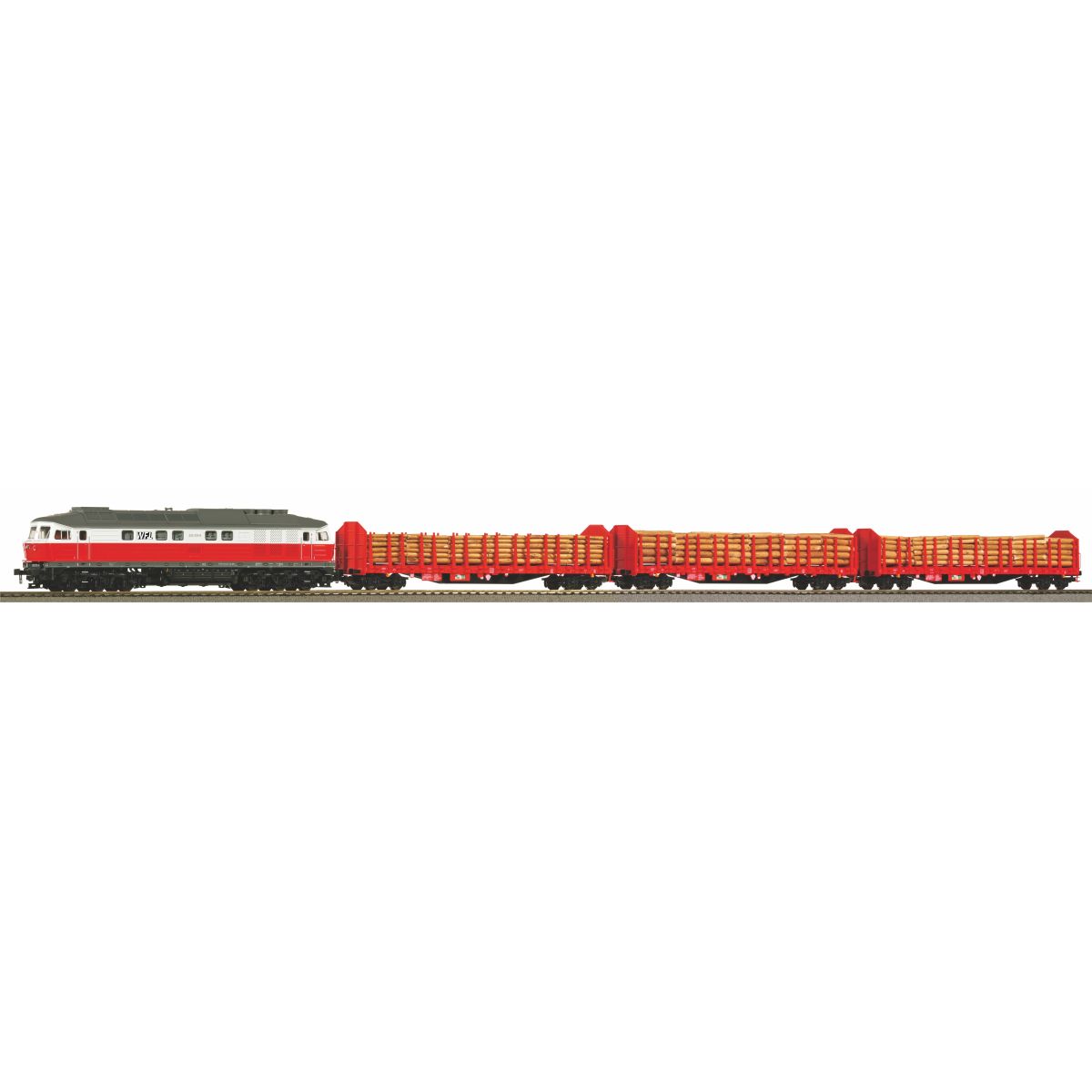 PIKO 58116 Vonat szerelvény, BR 232 Ludmilla dízel + 3 rönkszállító Roos vagon, WFL VI