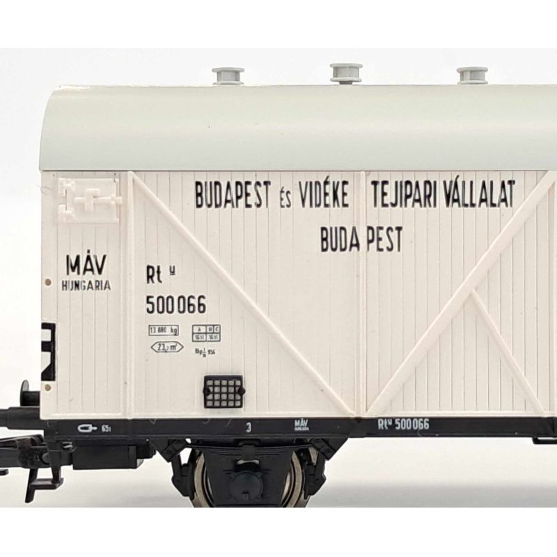 A tejes: 1936-ot írtunk, amikor modellünk eredetije BERLIN kocsitípusra keresztelt halszállító változatban kigördült a vagongyárból. Ez a jármű létezett fékbódés, és sörszállító kivitelben is. A második világháború harci eseményei következtében maradt hazánkban tejszállító magánkocsiként a MÁV hálózatán.