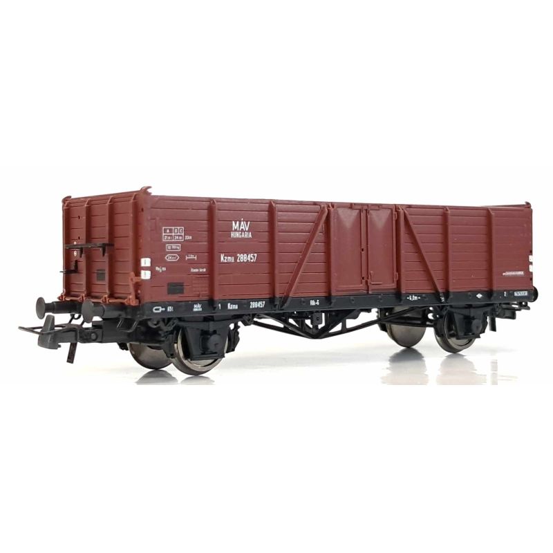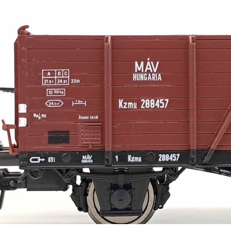 A nyitott: A német vasút a breslaui vagongyártól (ma WROCLAW) nagyobb mennyiségben rendelt magasoldalfalú nyitott kocsit. A keresztségben a VILLACH kocsitípusból 1941-től 49100 db-ot készítettek, melyből a második világégés alkalmával több idegen vasút tulajdonába is került. Modellünk, DRG 53858-as pályaszámmal 1945-ben a GySEV-hez Kzm sorozatként, később Kzmu 288457-es pályaszámmal került a MÁV állagába. A kocsi egészen 1976-ig volt állományban.