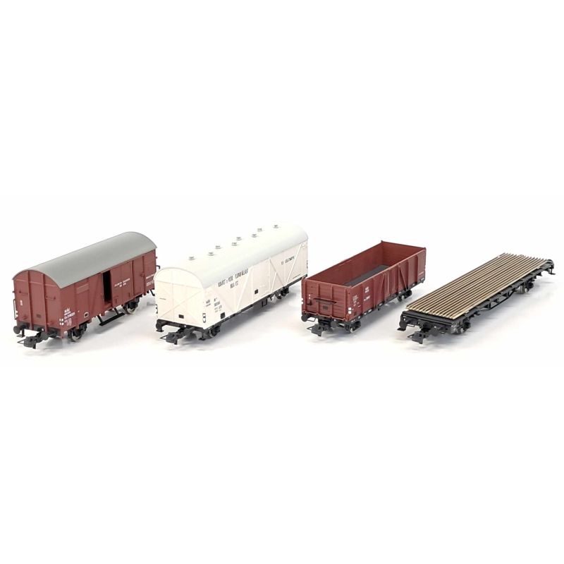 Harmincadik jubileumi modellévünk apropóján adjuk a négykocsiból álló teherkocsikészletet. A szettben található kocsitípusokkal, még nem jelentkeztünk szériában, és ezekkel a feliratozásokkal sem találkozhattak kínálatunkban.