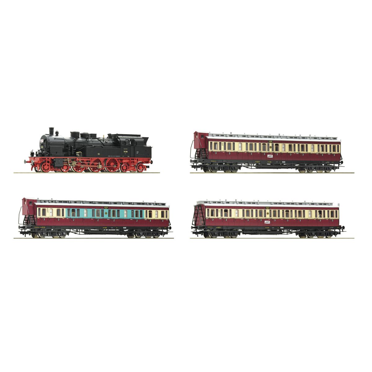 Roco 61477 Vonat szett Ruhr-Schnellverkeh, BR 78 gőzmozdony oldalfellépős személykocsikkal, DRG II