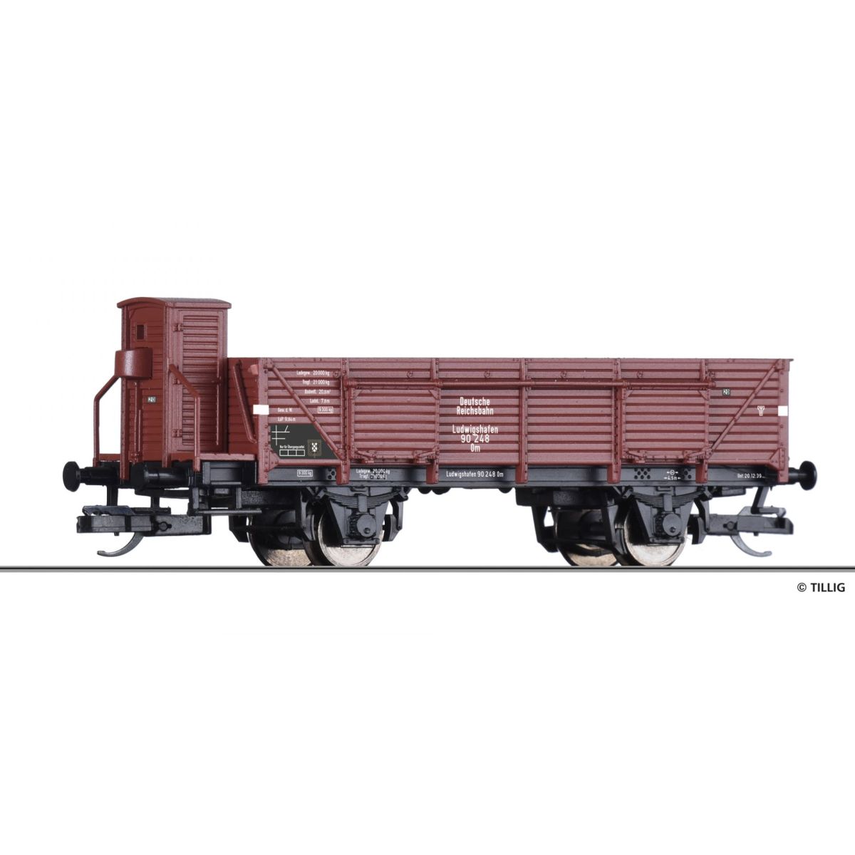 Tillig 17620 Nyitott teherkocsi fékházzal, Om, Ludwigshafen (Ö), DRG II