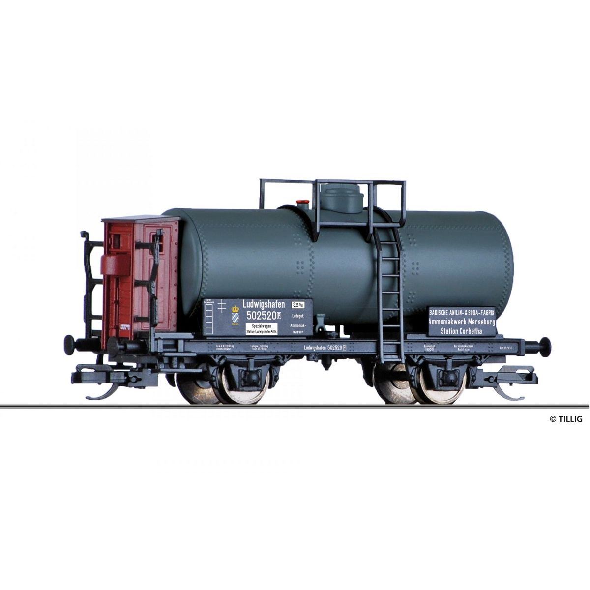 Tillig 95866 Tartálykocsi fékházzal, Badische Anilin-Sodafabrik, Werk Merseburg, K.Bay.Sts.B. I